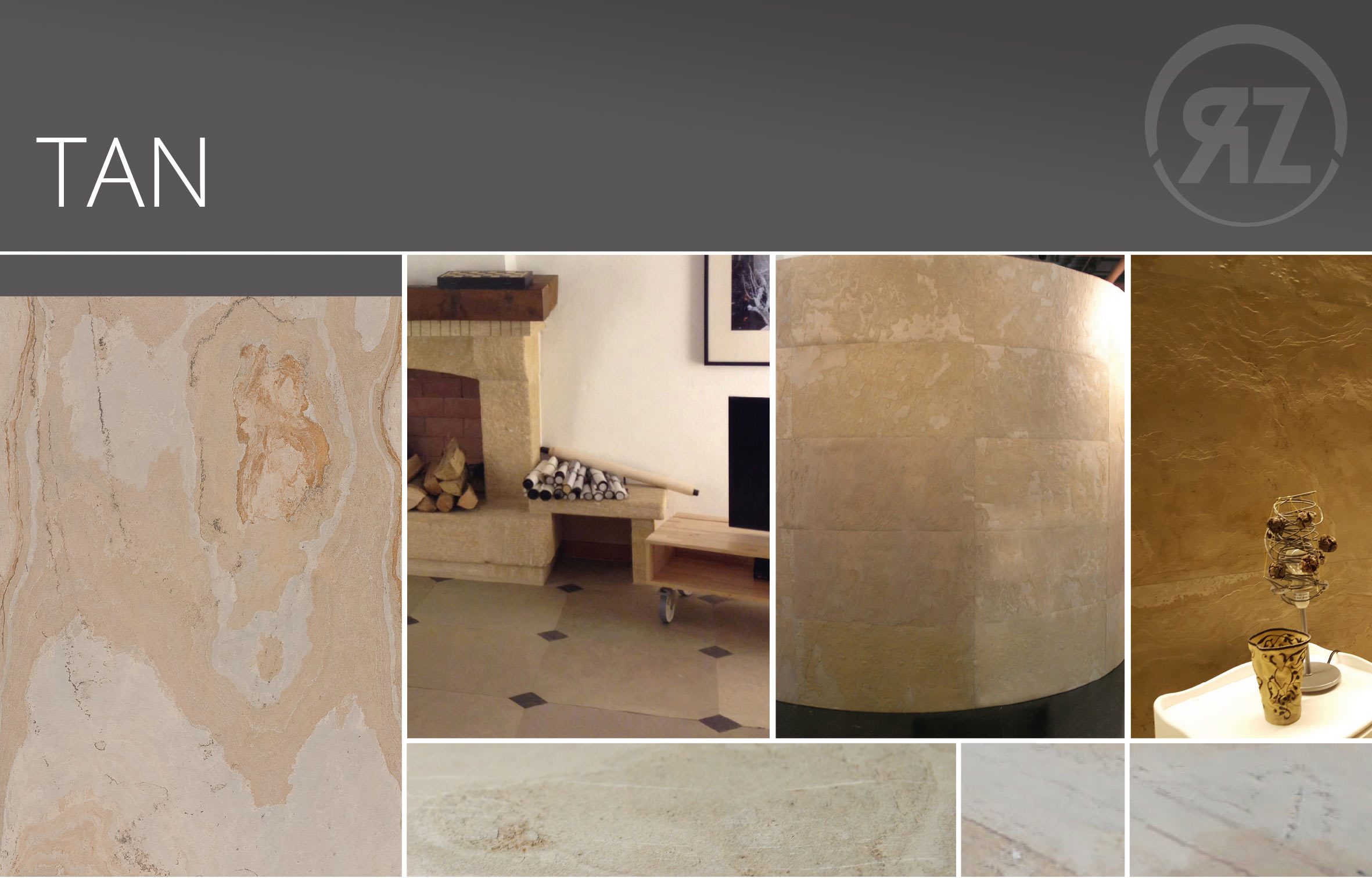 Tan ist ein Buntschieferdekor mit einer echten Steinoberfläche Der Buntschiefer zeichnet sich durch matte Farben, aber oft sehr stark durchwachsene Verläufe mit blumigen Mustern aus.